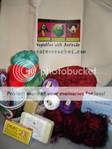 PMS Chocolate, a mug adorned with cherries, soaps, eyeball candies and lots of yarn and thread (DMC is my fave)! Thanks so much Secret Sistah!!!